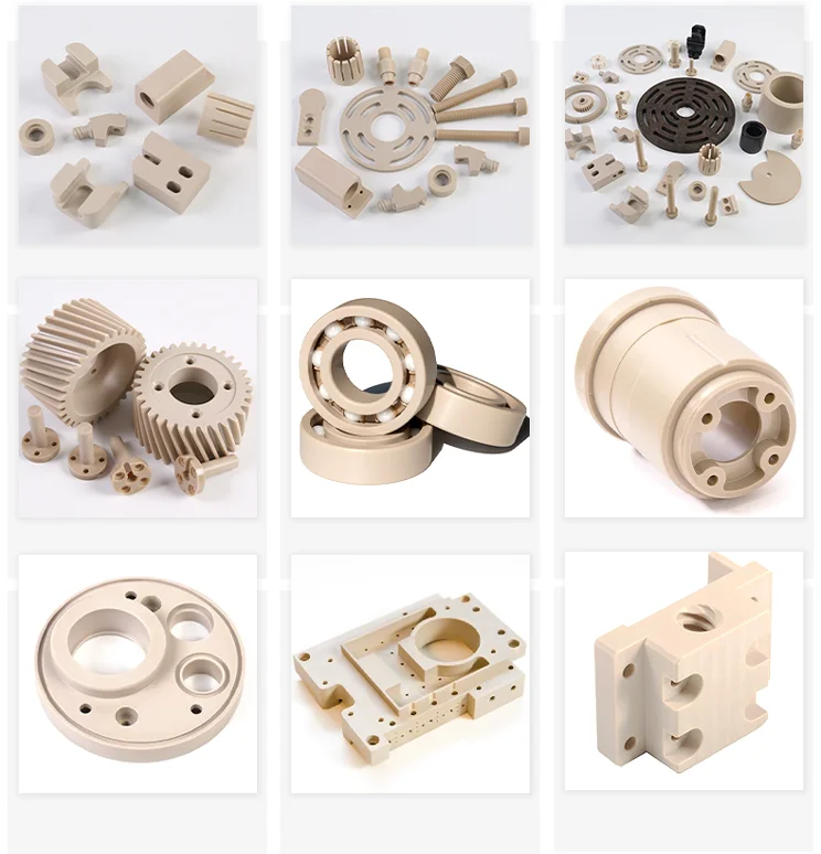 2.PEEK-HPV Carbon fiber reinforced with graphite and PTFE lubricants,our newest grade of PEEK offers the lowest coefficient of friction and the best machinability for all PEEK grades. Anexcellent combination of low friction,low wear,high LPV,low mating part wear and easy machining,make it ideal for aggressive service bearings.