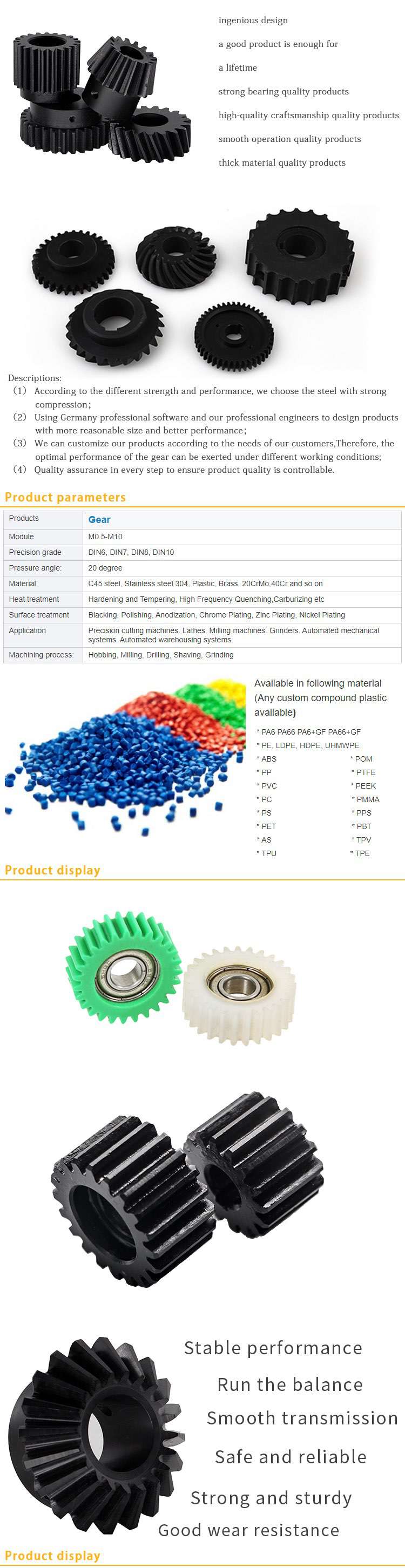 Plastic gear machinery processing plant, mold injection wholesaler, high mechanical strength nylon gear wear-resistant | plastic products customized multi-material, pom, pvc, abs, peek, etc. | injection molding and mold design, polyurethane casting, produ